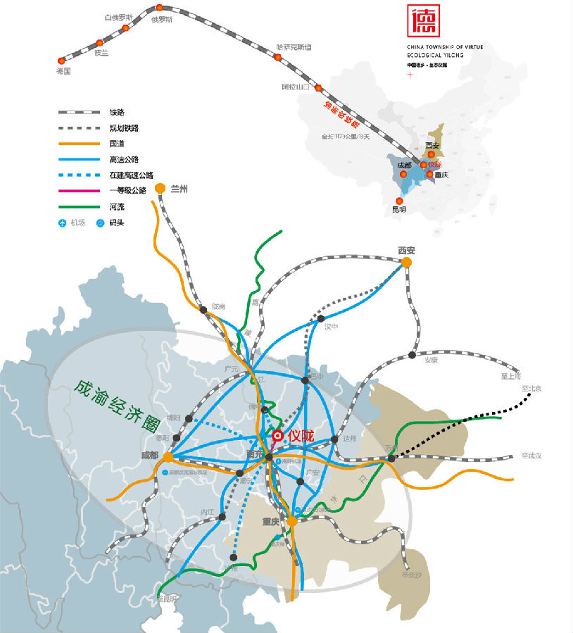 仪陇地处成都、重庆、西安三角腹地,是成渝经济圈与关天经济圈的中心地带。距南充高坪机场、成都双流国际机场、重庆江北机场及在建的巴中恩阳机场分别为70、227、200和68公里。已建成的巴南高速、广巴高速和待建的阆仪营高速,顺仪(南充至仪陇)一级公路在境内纵横交错、四通八达,构成全方位的立体交通网络,使仪陇融入南充“半小时经济圈”、成渝“两小时经济圈”。已建成通车的兰渝铁路李家站,距仪陇县城仅20公里。规划的汉巴南铁路,将在仪陇境内分设客、货运站。过境渝新欧铁路可直达中亚、欧洲地区,13天内可到达欧洲基本港,千吨级船队可通过嘉陵江仪陇港直达上海。