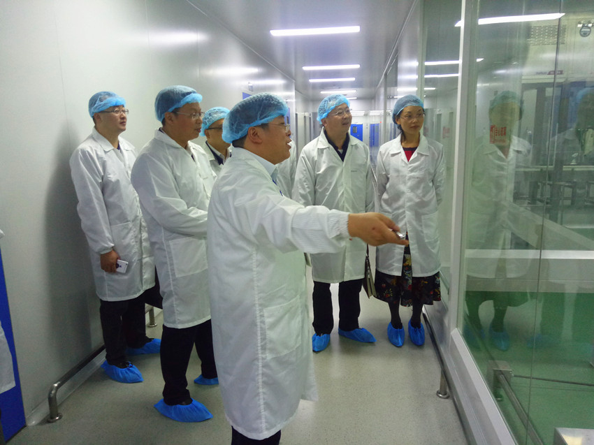 县委副书记、县长郭宗海深入成都金阁莱药业生产车间实地考察