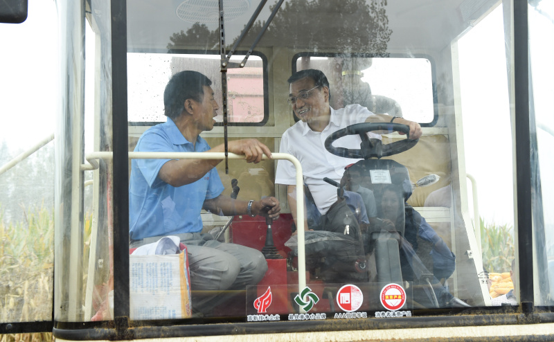 图为2015年9月24日,李克强到河南长葛老城镇西关村高标准农田察看玉米收成,考察农业现代化及土地流转情况。