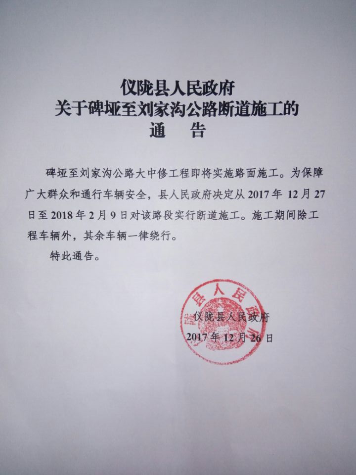 bet备用网址365777关于碑垭至刘家沟公路断道施工的通告正文区定位