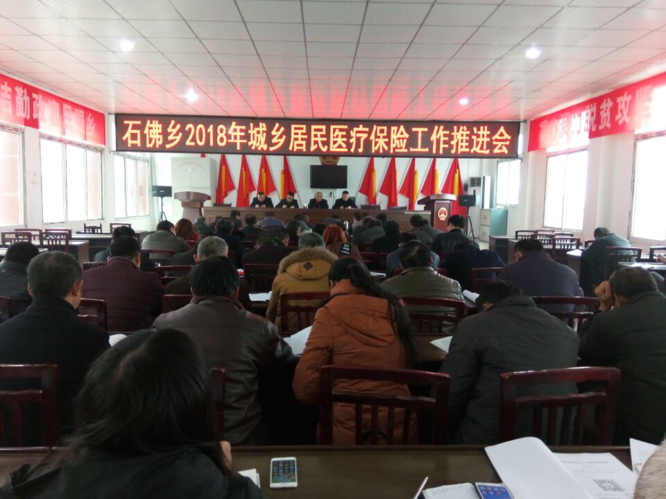 27日,石佛乡召开2018年度城乡居民医疗保险工作推进会议,会议由党委副书记敖皓伟主持,全体乡干部、村四职干部近70人参加。